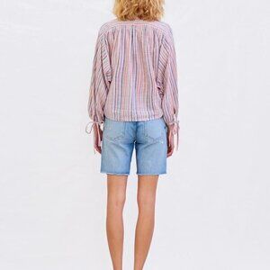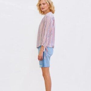 New With Tag Sundry Stripes Shirred Blouse with *flaw*: small pinhole left side of brand label (see last photo).