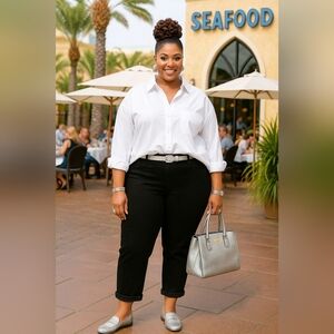 Absolutely Beautiful New With Tags Women's Plussize 24W Roll Cuff Cropped Black Jeans Cotton Spandex Blend Super Stretch Slimming Lightweight Super Soft Comfortable Packable Washable Business Casual Vacation Cruise Resort Festival Travel Versatile Bohemian Gypsy Festival Preppy Modern Stylish Minimalist Summer Brunch BBQ Pool Going Out Grunge Gothic Rockabilly Pinup Academia Y2k Retro Midrise Coastal Cowgirl Cottagecore Fairycore Spanx Farmhouse Hippie Lagenlook Relaxed Fit