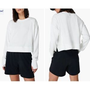 New Sweaty Betty White Long Sleeve Cropped Sweatshirt Top Size 6
