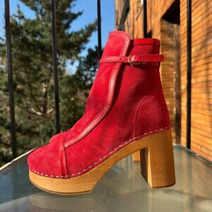 New Swedish Hasbeen Sophisticated Jodhpur Heeled Clog Boot in Red