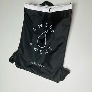 New Sweet Sweat Black Drawstring Gym Travel Bag Backpack. This Sweet Sweat bag offers a practical and convenient look. The black color is versatile, and the drawstring closure allows for easy access to your belongings. The backpack straps make it comfortable to carry, and the potential features like mesh panels and interior pockets make it functional for gym use or travel.