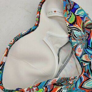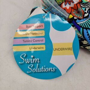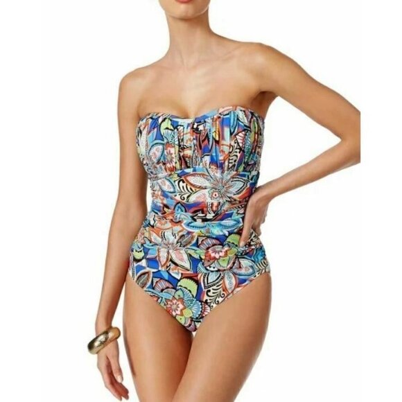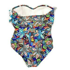 New Swim Solutions Fiesta Print Swimsuit Womens 20 Shirred Bandeau One Piece