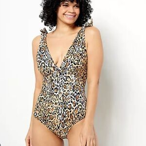New Swimsuits For All Tie Shoulder Leopard Swimsuit Multiple Sizes