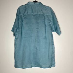 New Syllables Aqua Blue Ramie Button Top Pant Set Men's Size 34 Large