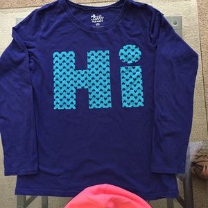 New! Old Navy, Youth Sz L 10/12~ Set Of 2 Tops~ First Top is a Drk Blue, Long Sleeve, Jersey w/ the Words "HI" & "BYE" Printed On Front & Back, Super Cute~ Second Top Is A Coral Colored, Long Sleeve, Hoody Sweatshirt w/ Company Logo Printed on Front~ Both Are New & In Excellent Condition~ I Feel I've Set A Fair, Affordable Price for these 2 New Top's. Firm Price~Thanks for Looking.