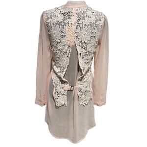 New Sz M Womens Pink sheer Lace Tuxedo Top Fairy couquette whimsigoth wedding