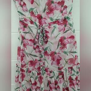 New Sz small MISA LOS ANGELES NIKA DRESS FUSCHIA MIX floral printed chiffon midi