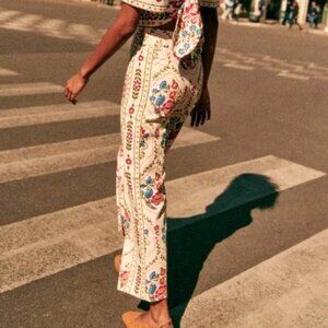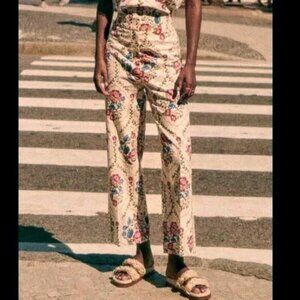 New Sézane x Farm Rio Tiago Linen Cotton Floral Cropped Pant 42, 10