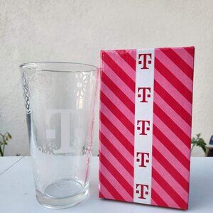 New T mobile Promotional Glass Holiday Cup Etched Ornaments Letter T Drinking