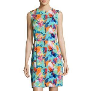 New! TAHARI ASL Women's Floral Print Scuba Sheath Dress Sleeveless Size 6