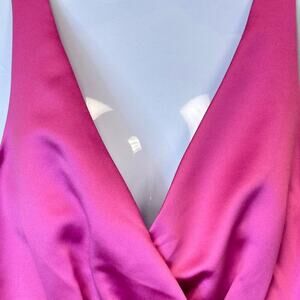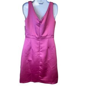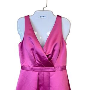 Brand New with Tags TAHARI Arthur S. Levine Mandi Cocktail Party Dress Peony Pink Satin Sleeveless, Crisscross V-Neck Top, Front Pleated Skirt Hidden Zipper MSRP: $210