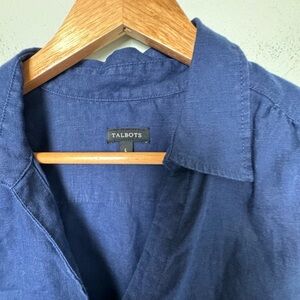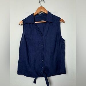 New TALBOTS 100% Linen Navy Blue Sleeveless Tie-Front Blouse Top Size Large NWOT