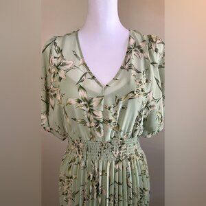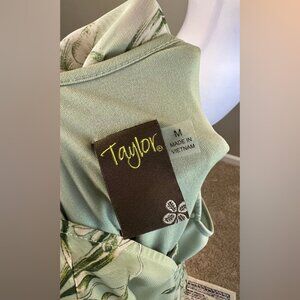 A smocked waist beautifully defines this Medium size midi dress from Taylor, featuring a pleated skirt.