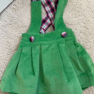 New! TBBC 12-18 month Green Corduroy Skirt with Plaid Straps and Onesie