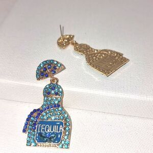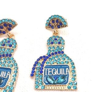 Gorgeous turquoise & colbolt blue rhinestone tequila bottle earrings
