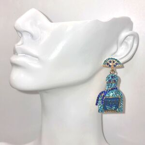 New TEQULIA BOTTLE TURQUOISE & COLBOLT BLUE rhinestone earrings
