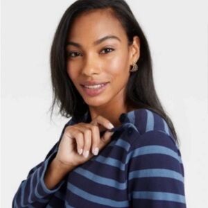 New THE NINES by HATCH Striped Top Navy & Blue Long Sleeve Maternity XXL NWT