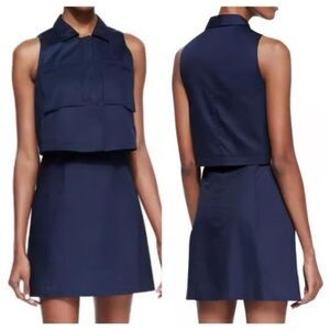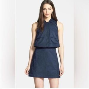 New! THEORY Navy Blue Gemine Sleeveless Tiered A-Line Cargo Mini Dress 💙 sz 4