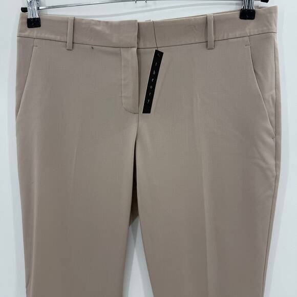 New THEORY Womens Wool Trouser Pant Size 8 Testra Khaki Tan Straight Leg Stretch