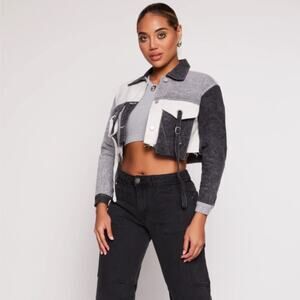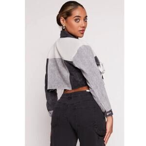 New THRILL JEANS Color Block Cropped Jean Jacket Women’s Gray