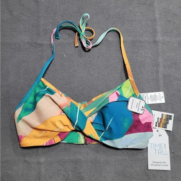 New TIME & TRU tropical Ruched Halter Swimsuit underwire bikini Top small