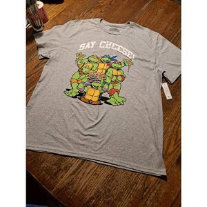 Teenage Mutant Ninja Turtles t-shirt, TMNT Say Cheese shirt, Nickelodeon TMNT tee, men’s XL Ninja Turtles shirt, new with tags TMNT top, retro cartoon t-shirt, pizza party turtles shirt, 90s nostalgia t-shirt, comic character shirt, Leonardo Raphael Donatello Michelangelo tee, gray graphic t-shirt, TMNT pizza slice design, superhero cartoon shirt, fan Ninja Turtles