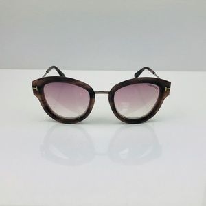 Brand new authentic Tom Ford Mia Gradient Rounded Sunglasses Lens Width: 52 mm. Lens Bridge: 22 mm. Arm Length: 140 mm. 100% UV protection. Lens Type: Gradient, Mirrored Pink. Frame Material: Acetate, Metal. Frame Color: Light Havana Original plastic packaging with factory stickers matching the serial #, box, case, cleaning cloth, booklet and authenticity certificate card *Model's photos are for fit demo only, and may not reflect actual colors Tags: sporty classic tortoise shell
