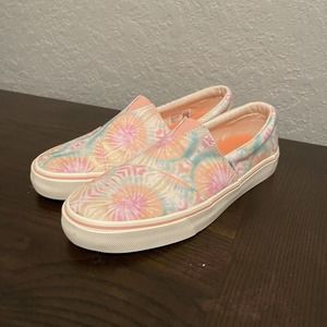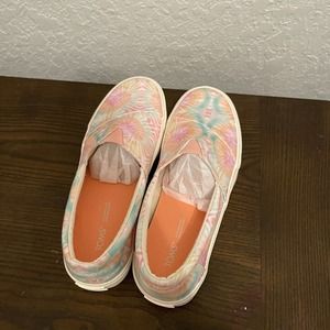 New TOMS Womans Sz 8.5 Alpargata Fenix Slip On Candy Pink Tie Dye Canvas NIB
