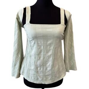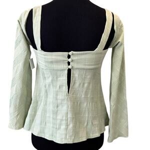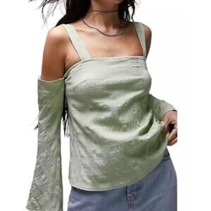 New TOPSHOP Green Plaid Long Sleeve Cold Shoulder Blouse Top Size 4
