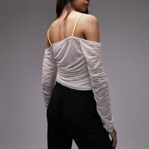 New TOPSHOP NORDSTROM Women's Cream Ruched Mesh Long Sleeve Top Size 4-6