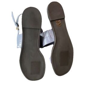 New TORY BURCH EVERLY DOUBLE STRAP LEATHER FLAT SANDALS DARK LOTUS Size 10.5