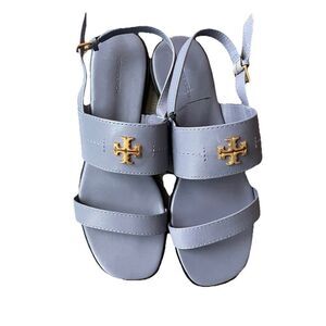 TORY BURCH EVERLY DOUBLE STRAP LEATHER FLAT SANDALS DARK LOTUS SZ 10.5 Gold hardware.