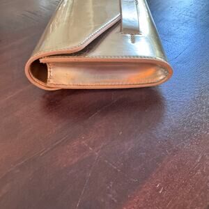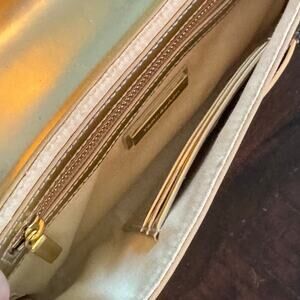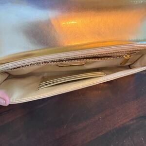 New TORY BURCH Kira Gold Metallic Leather Envelope Clutch Evening Handbag