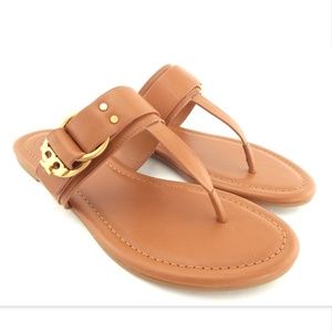 New TORY BURCH Logo Royal Tan Flat Thong Sandals 6