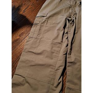 New with tags TRU-SPEC womens size 16 professional grade 24-7 Series ripstop cargo pants by Atlanco, new with tags, tactical duty and work pants designed for durability and everyday performance. Made from polycotton ripstop fabric, 65% cotton, 35% polyester, featuring a self adjusting slider waist, flat front pockets with extra deep storage, reinforced knees with inside openings for knee pads, two cargo pockets with hook and loop closures, internal magazine compartments, and cell phone magazine pockets for professional or utility use. Measurements are taken when item is laid flat, not stretched, and are approximate, may vary slightly due to hand measuring. Waist approx 17.5"–18", rise approx 9.5"–10", inseam approx 32", ankle opening approx 10" Color hue might vary depending on lighting conditions