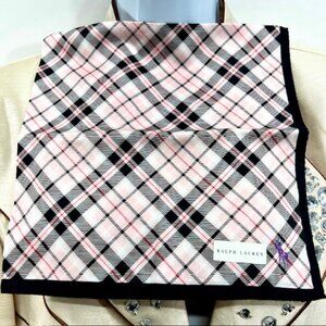 New Tag On Ralph Lauren MiniScarf/Handkerf Cotton/Silk 20" Pink Gray Black Check