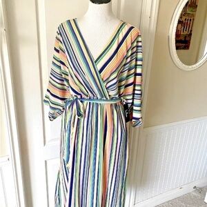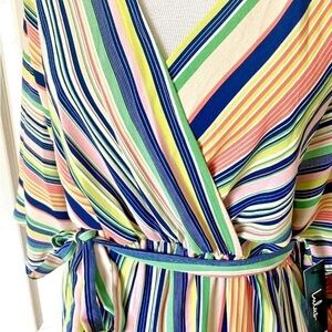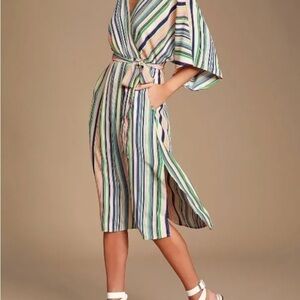 New Tag Womens Lulus Sz XL Dress High Potential Multi Striped Midi Kimono Sleeve