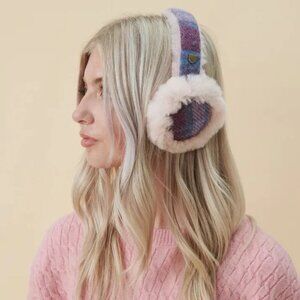 New Tags Harris Tweed Sheepskin Earmuffs Brown Herringbone Tartan (Scotland)