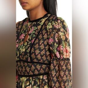 New Tahari ASL Floral Long Sleeve Chiffon Dress Mini Boho Church Spring Sz 4