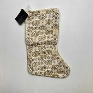 New Tahari Beaded Christmas Stocking Cream Gold - 22"