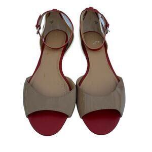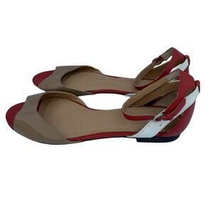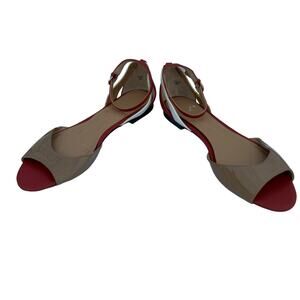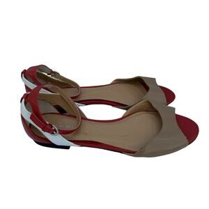 Tahari Fleur Women's Peep Toe Tan Red White Peep Toe Ankle Strap Sandal