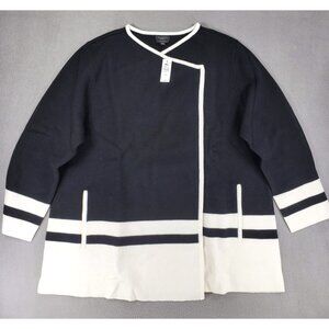 New Talbots Black Beige Open Front Cardigan Sweater Drape 2Xp Merino Wool Petite