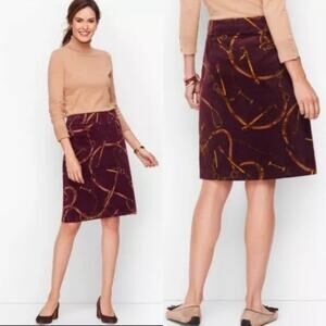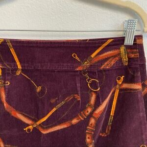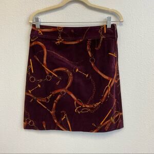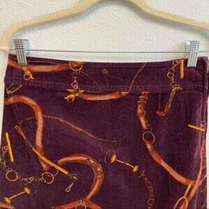 New Talbots Corduroy Knee Length Skirt Horsebit Equestrian Print Plum Size 2