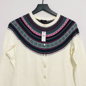New! Talbots Fair Isle Trim Cardigan Cotton Cashmere Petite Sweater