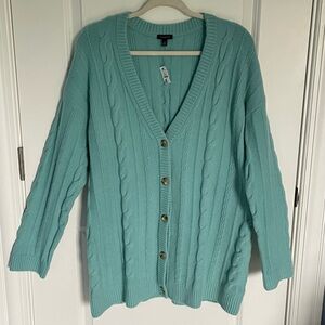 Talbots Green Cable Knit V-Neck Button Front Cardigan Sweater Size XL