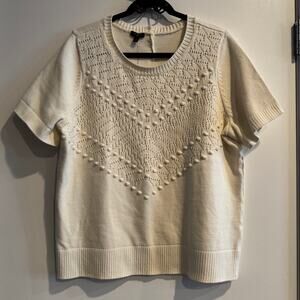 New Talbots Knitted Top White Cream Ribbed Hem Back Button Short Sleeve Sz 1X