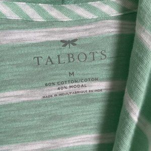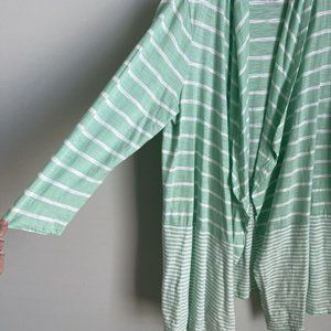 New Talbots Mint Green Striped 3/4 Sleeve Open Front Cardigan