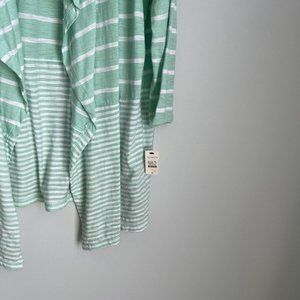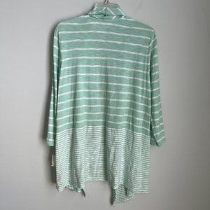 New With Tags Talbots Mint Green Striped 3/4 Sleeve Open Front Cardigan Women's