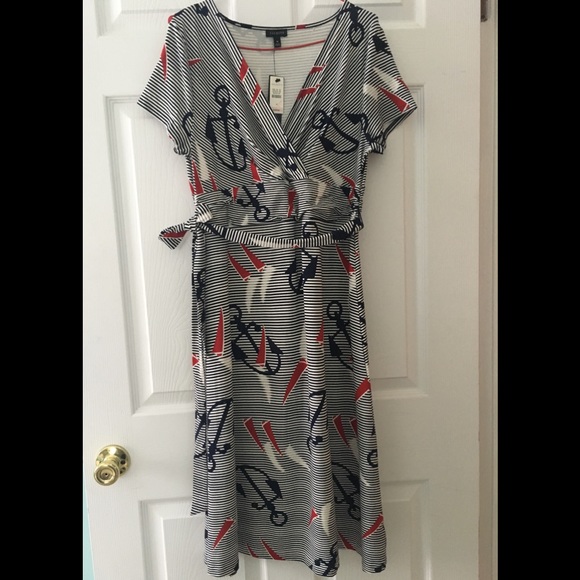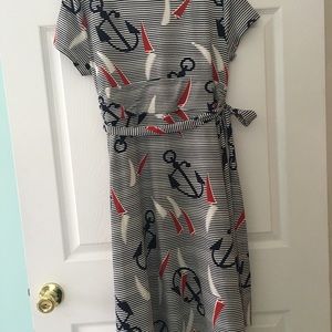 Sail Away in This Nautical Inspired Faux Wrap Dress.