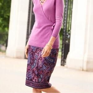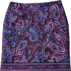 New Talbots Petite Paisley Pencil Skirt l size 12 Petite 12P Purple Pink blue